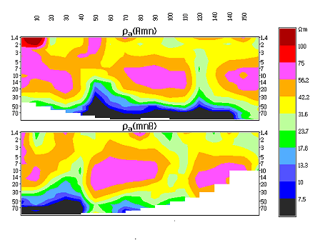 1. Psedo-cross-section of observed field for pair pole-dipole arrays.