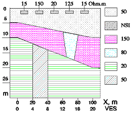 in the part of the profile with NSI (VES 0-20). The smaller is fitting